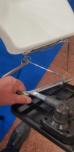 SFILANDO IL BRACCIOLO SI OTTIENE UN OTTIMALE IMPILAGGIO DELLA SEDIA (FINO A 20/25 SEDIE)